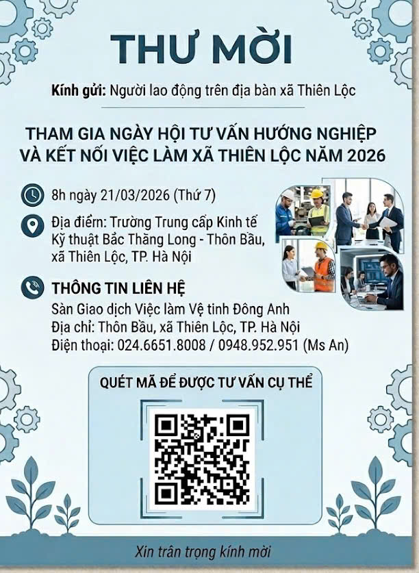 THƯ MỜI THAM GIA NGÀY HỘI TƯ VẤN HƯỚNG NGHIỆP VÀ KẾT NỐI VIỆC LÀM XÃ THIÊN LỘC NĂM 2026